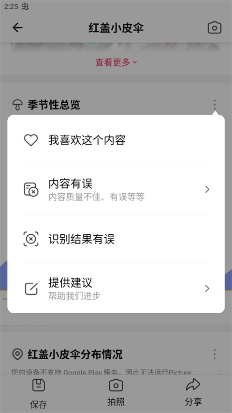 3、拍照結(jié)束后,即可獲取該蘑菇的詳細信息內(nèi)容。