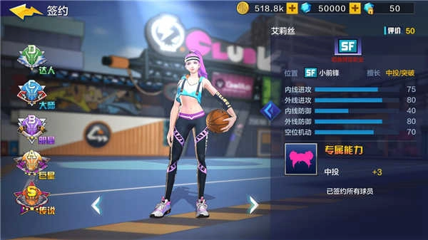 PG(控球后衛(wèi)):PG是全隊(duì)進(jìn)攻的組織者,對(duì)球場(chǎng)的全局有更敏銳的觀察。選擇“上籃強(qiáng)化+假投真?zhèn)鳌?,制造假?dòng)作騙過對(duì)手視線,出其不意、輕松得分。