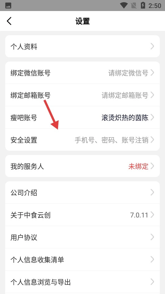 2、在設(shè)置界面點(diǎn)擊【安全設(shè)置】,進(jìn)入安全設(shè)置頁(yè)面。
