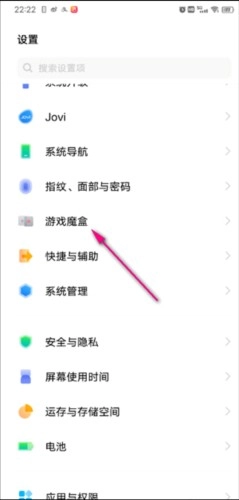 2、在設(shè)置中找到游戲魔盒點(diǎn)開。