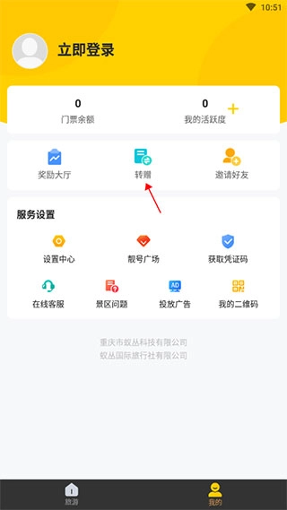1、首先打開打開蟻叢旅游,在我的頁面點擊轉增