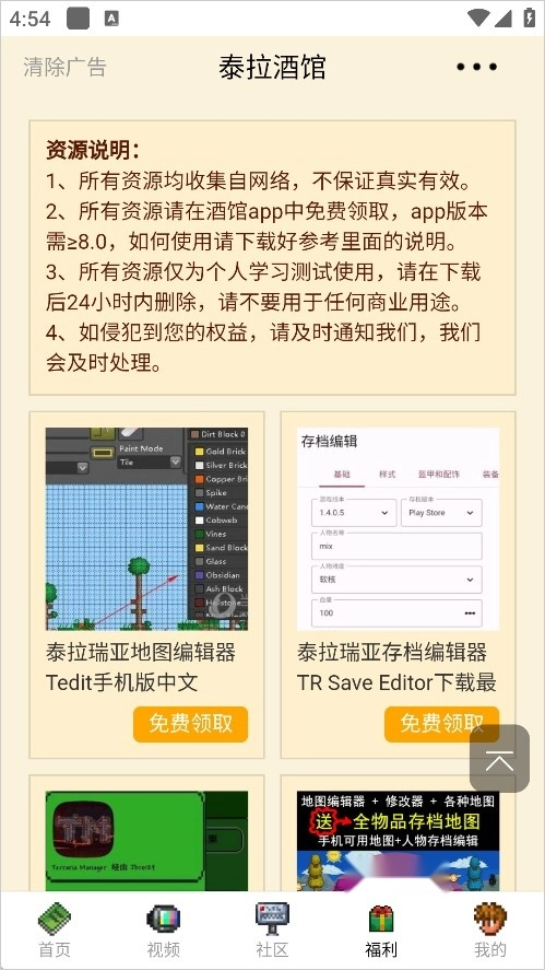 6、福利欄里包含了各式各樣的泰拉瑞亞模組、游戲本體包以及存檔等資源,你可以依據(jù)自身需求進(jìn)行選擇或使用。