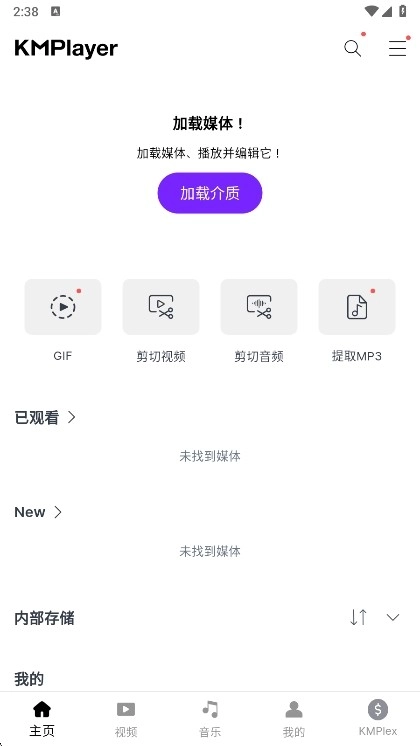 1. 首先打開手機(jī)里的KMPlayer視頻播放軟件,然后點(diǎn)擊軟件底部的【主頁】功能按鈕。