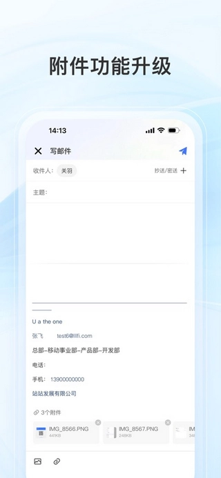 5、擁有附件功能,用戶可以為自己的郵件添加各種附件,滿足用戶各種需求;