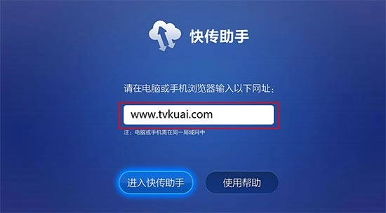 一: 安裝并運行電視上"快傳助手"客戶端。