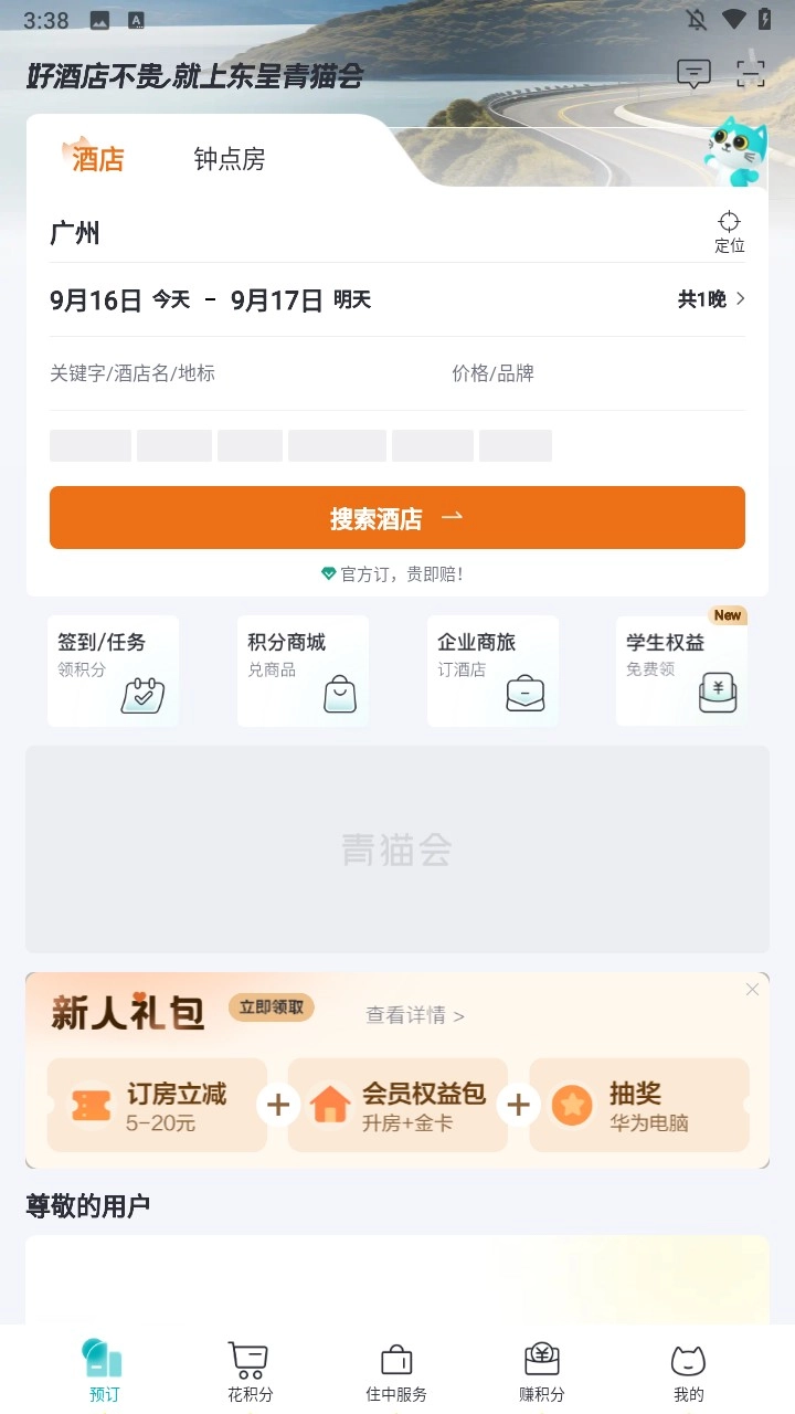 1、打開軟件后,在主頁就能進行酒店搜索和預(yù)訂。