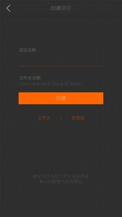 2、填寫好項目名稱和文件夾名稱;