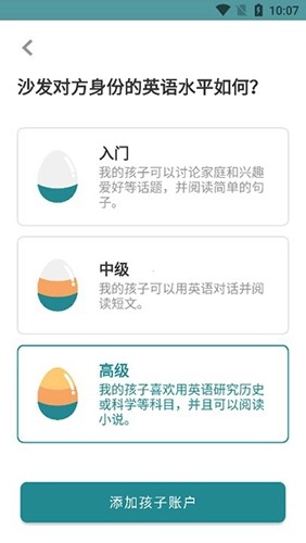 3、然后選擇孩子目前的英語水平,就可以下一步了。
