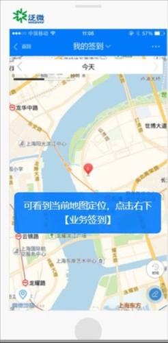 4、進入地圖之后點擊右下角的業(yè)務(wù)簽到。