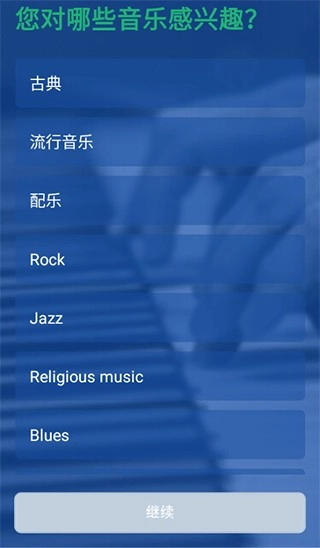 請(qǐng)?zhí)暨x出您最鐘愛(ài)的音樂(lè)流派:古典、流行、搖滾、民謠、爵士、R&B、放克與靈魂樂(lè)、嘻哈、新時(shí)代、世界音樂(lè)。