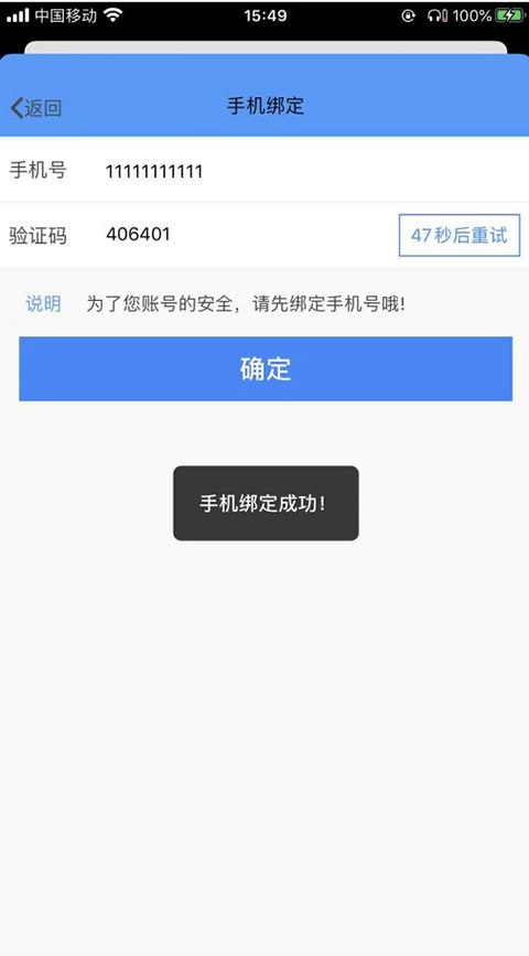 3、賬號未綁定手機(jī)號的情況下,點(diǎn)擊“登錄”后,進(jìn)入【手機(jī)綁定】頁面。