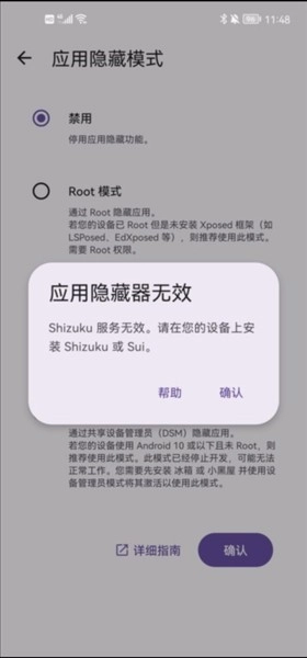 如果您的設(shè)備已 Root 且已安裝 Magisk,推薦選擇 Shizuku/Sui 模式。