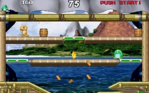 左側(cè)輪盤(pán)用于操控角色移動(dòng),A鍵負(fù)責(zé)投擲炸彈,B鍵則是角色跳躍的指令。需要留意的是,每次僅能投擲一枚炸彈。擊敗怪物后獲取的加速鞋帶有幻影特效,此外還能通過(guò)炸毀木桶來(lái)獲取道具,以此助力通關(guān)。