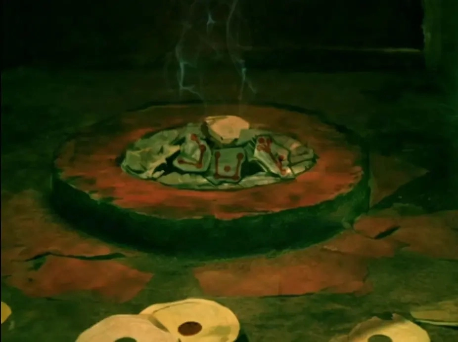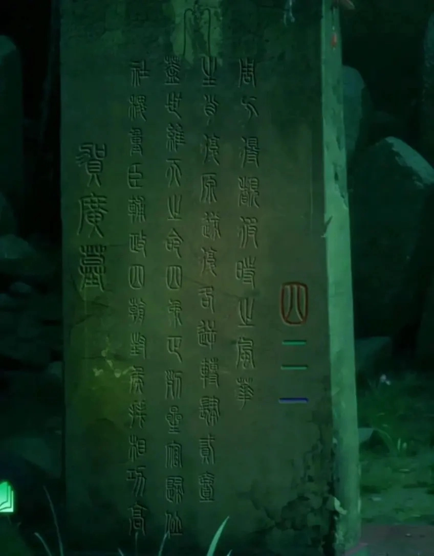 點擊右上角雕像的頭頂位置能發(fā)現(xiàn)一條線索,關(guān)鍵在于鬼畫符的所在之處——那些像樹枝一樣的圖案在上方,大烏龜玄武也在上面。由于這是個圓盤,只需記住上方的部分就行。最外圈的鬼畫符雖不認(rèn)識,但能辨認(rèn)出下方是羊的圖案,把這個記下來。