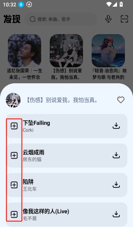 直接點擊歌曲左側(cè)的+號,就能將歌曲添加至歌單或者播放列表。