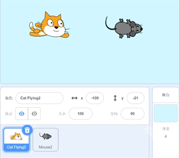 設(shè)置好小貓和老鼠角色,并設(shè)置好背景圖。