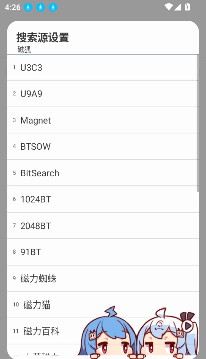 點擊搜索框左側的文字,即可進行搜索源的選擇,其中包含21個搜索源。