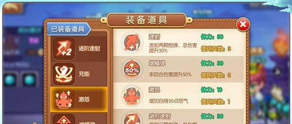 怒氣值(戰(zhàn)斗狀態(tài)下可見):初始值為0,上限100。角色受到攻擊、發(fā)射炮彈時(shí)會增加怒氣(使用道具“激怒”可直接增加50點(diǎn),發(fā)射炮彈每次增加10點(diǎn)),當(dāng)怒氣值積滿后,即可釋放武器的必殺技能。