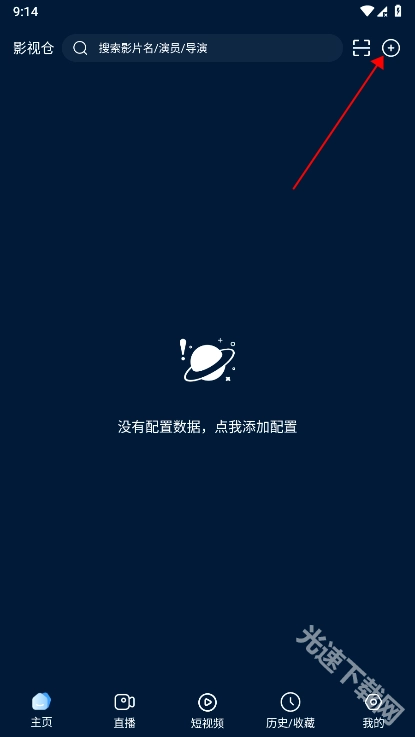 首先安裝影視倉(cāng)的最新版本,進(jìn)入應(yīng)用后界面是空白的,此時(shí)點(diǎn)擊右上角的加號(hào)按鈕。