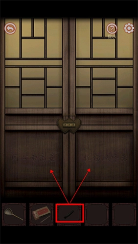 點(diǎn)擊左邊的房子,用木炭涂在門(mén)上,獲得開(kāi)門(mén)的線索;