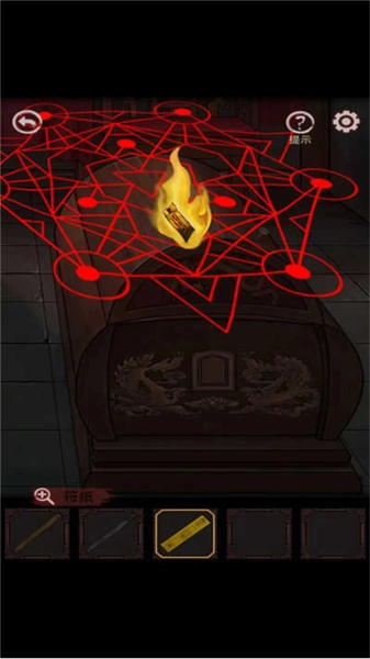 進(jìn)入左側(cè)墓室,劃亮火柴點(diǎn)燃蠟燭,墻上隨即顯現(xiàn)出線索;按照線索轉(zhuǎn)動(dòng)下方的四個(gè)鐘,頭頂?shù)纳w子便會(huì)開(kāi)啟,這樣就能立刻離開(kāi)此地了。