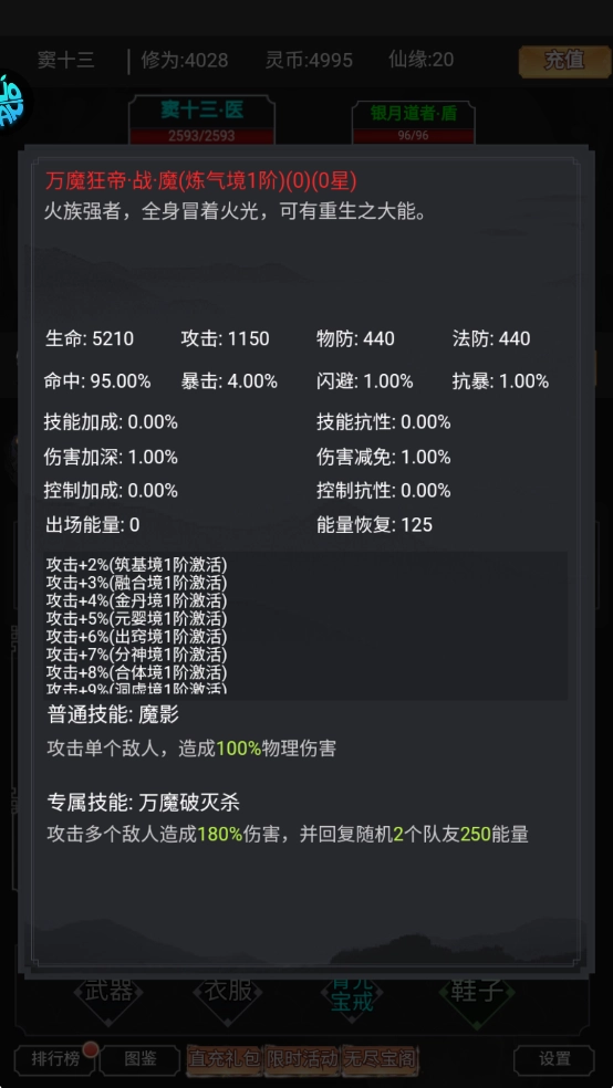前排的火山神、白鶴仙子與文曲星憑借出色的坦度為隊(duì)伍筑牢了安全防線,九天玄女的復(fù)活技能則確保了隊(duì)伍成員的穩(wěn)定留存,后排的葫蘆妹和七娃則負(fù)責(zé)通過群攻技能完成收割。
