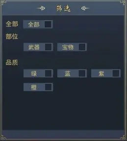 裝備品質(zhì)為綠色、藍(lán)色、紫色、橙色