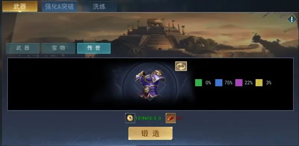 當(dāng)發(fā)展度達(dá)到1700時,將解鎖裝備鍛造功能。裝備鍛造包含兩種類型,分別是正常鍛造與傳世鍛造。