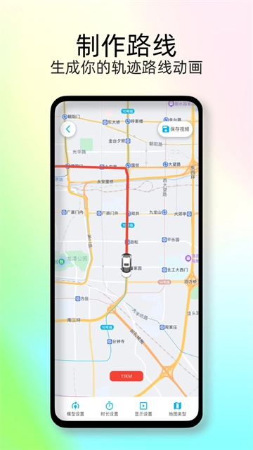 此外,在全新版本的足跡地圖里,用戶還能制作軌跡路線的動畫視頻,這樣就能直觀地了解從起點到終點的行駛路程以及途經(jīng)的區(qū)域。