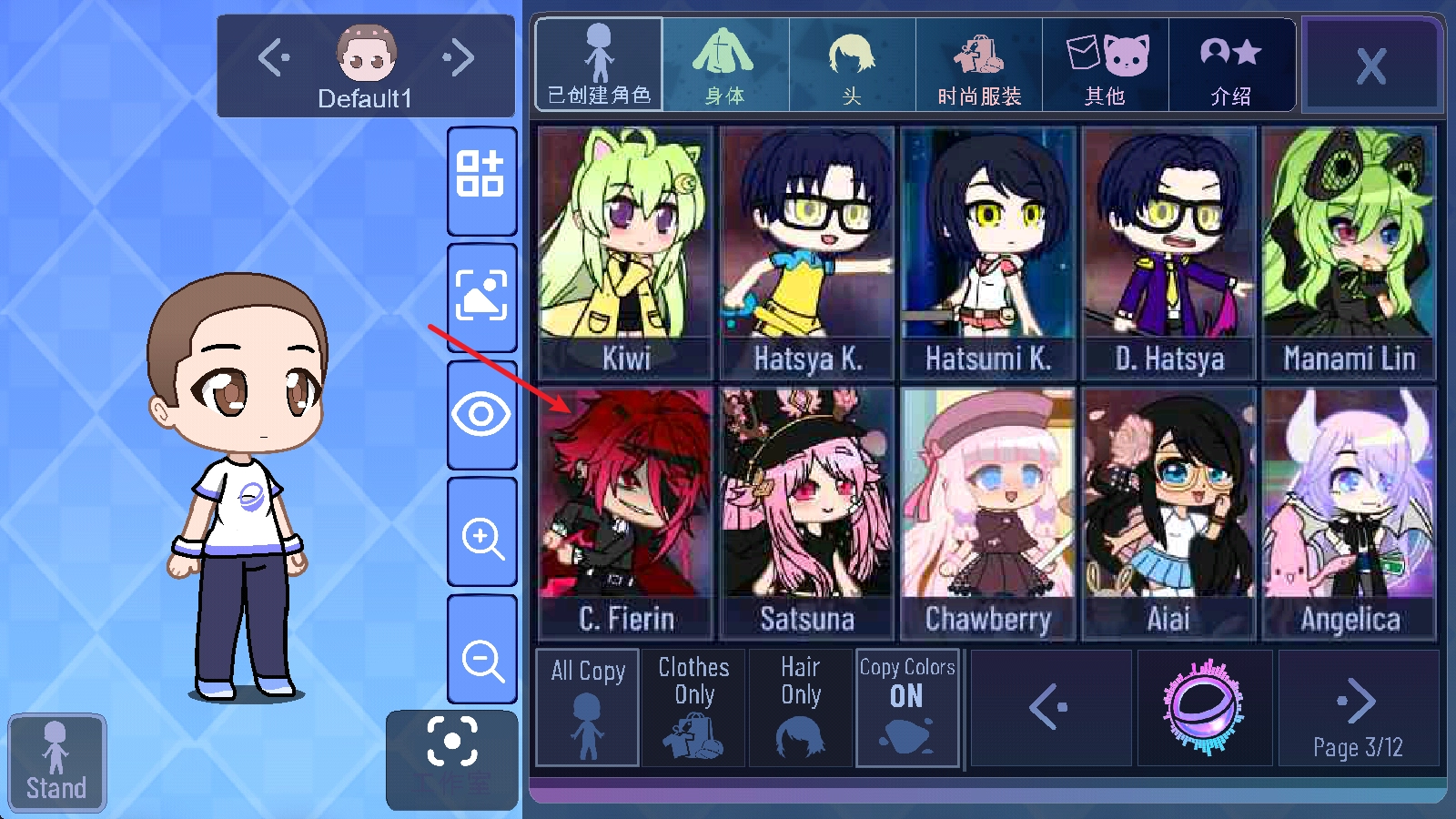 接下來我們可以嘗試復(fù)制自己喜歡的角色,選中角色后,系統(tǒng)會默認(rèn)復(fù)制其全部內(nèi)容,涵蓋發(fā)型、服飾等各個(gè)方面。