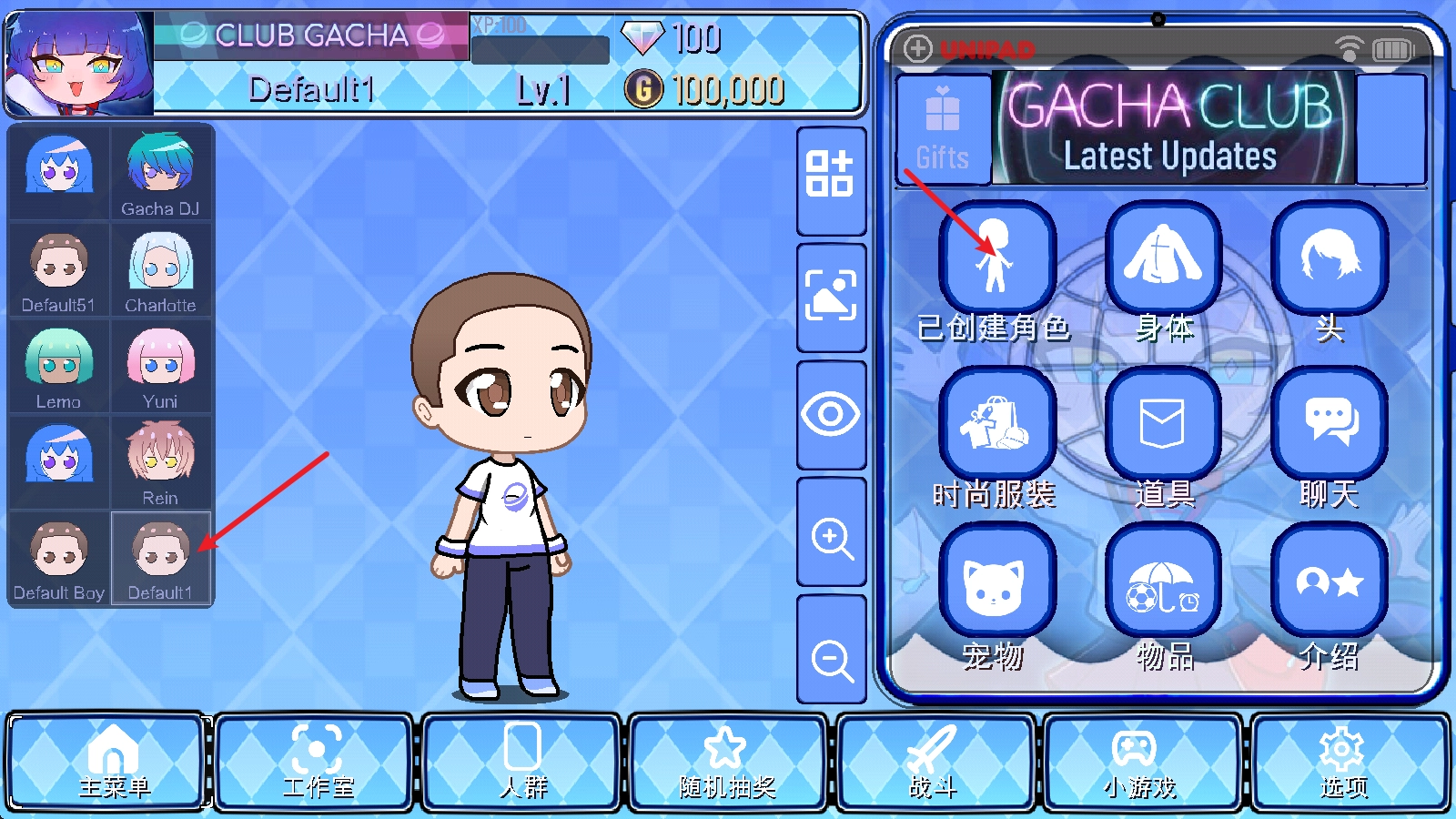 首先我們在主界面找到一個(gè)初始角色,接著點(diǎn)擊右側(cè)已創(chuàng)建好的角色。