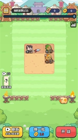 進(jìn)入關(guān)卡后,把初始英雄放置在平地上,若有相同的英雄,可通過(guò)合成來(lái)提升等級(jí)。