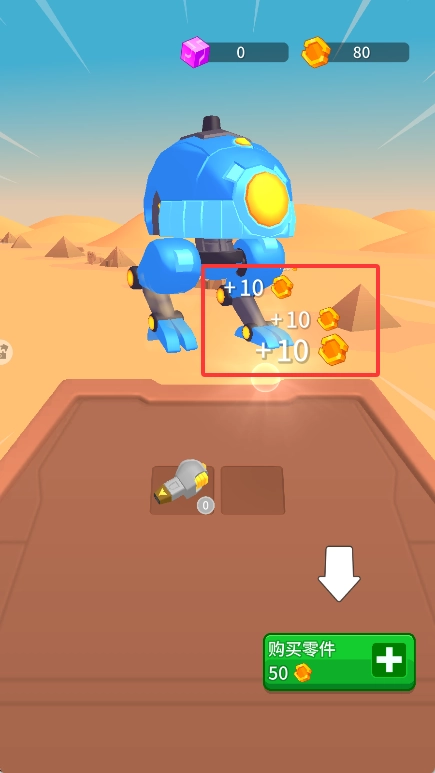 每次點擊都會獲得十金幣,金幣可以購買零件。