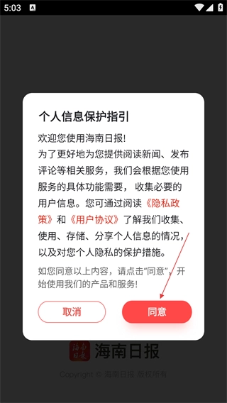 進(jìn)入應(yīng)用后會彈出《個人信息保護(hù)指引》窗口,仔細(xì)閱讀相關(guān)內(nèi)容后,點(diǎn)擊“同意”按鈕即可。