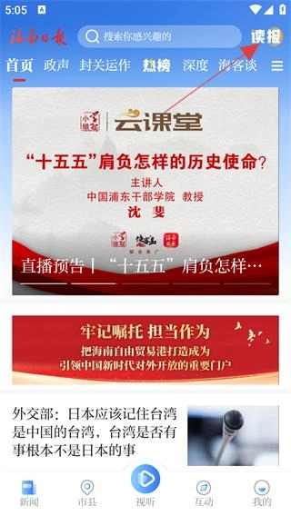 進(jìn)入主界面后,點(diǎn)擊右上角【讀報】功能。