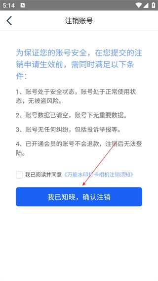 閱讀注銷條件并勾選同意協(xié)議后,點(diǎn)擊【我已知曉,確認(rèn)注銷】按鈕即可完成賬號(hào)注銷操作。