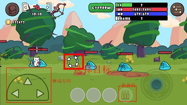 可以通過左側(cè)的操作來控制人物移動(dòng),再調(diào)整瞄準(zhǔn)鏡以選定要攻擊的目標(biāo)。要是彈藥用完了,別忘了及時(shí)點(diǎn)擊右下角的按鈕來補(bǔ)充彈藥。