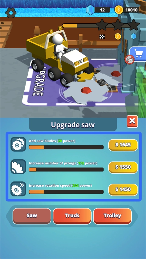 通過售賣草獲取金幣后,要及時對收割機配件進行升級,比如加裝鋸片、增加鋸齒數(shù)量以及提升旋轉速度。