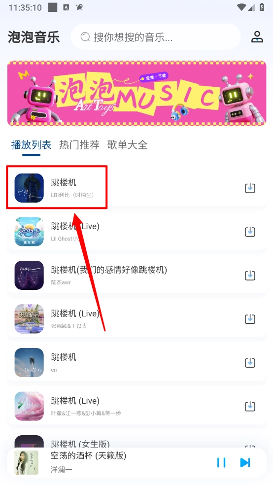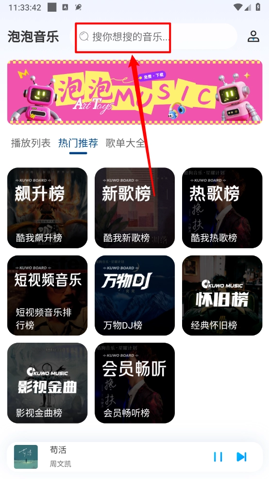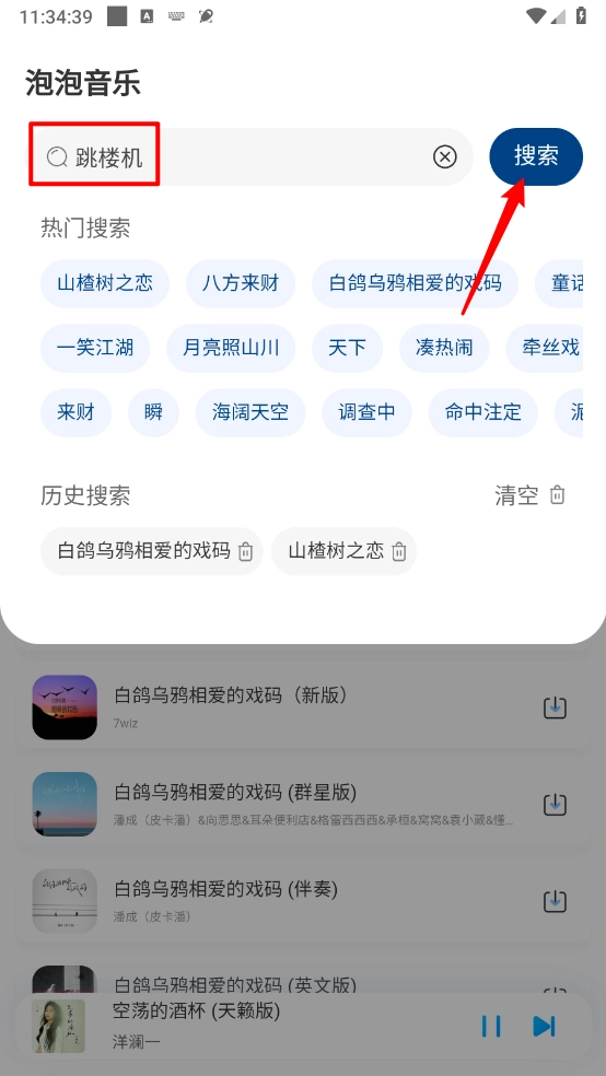 如圖所示,輸入歌名點(diǎn)擊右邊的"搜索"。