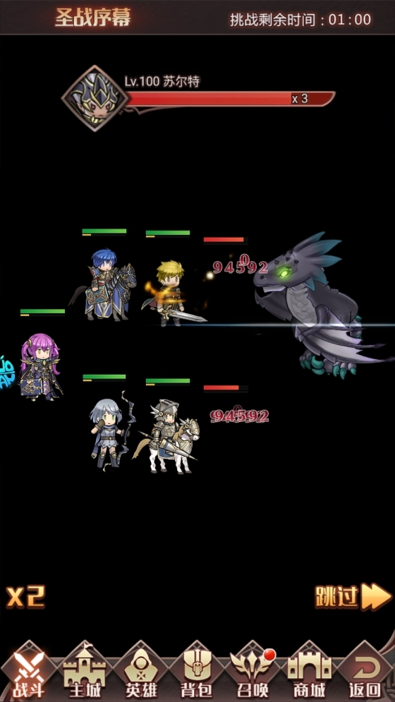 進(jìn)入主線任務(wù)后,系統(tǒng)會(huì)自動(dòng)觸發(fā)戰(zhàn)斗環(huán)節(jié),你可以選擇跳過戰(zhàn)斗過程,以此快速推進(jìn)劇情發(fā)展,從而體驗(yàn)戰(zhàn)棋掛機(jī)玩法帶來的輕松感。