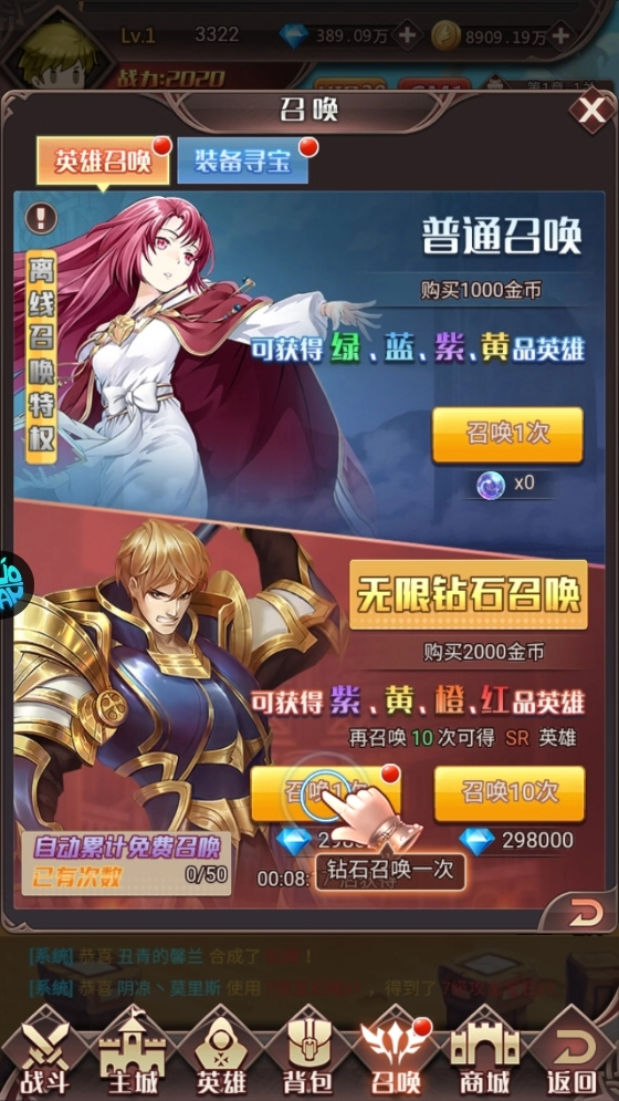 點(diǎn)擊召喚功能就能召喚英雄,持續(xù)壯大你的勇士隊(duì)伍,為守護(hù)王國(guó)匯聚更強(qiáng)力量。