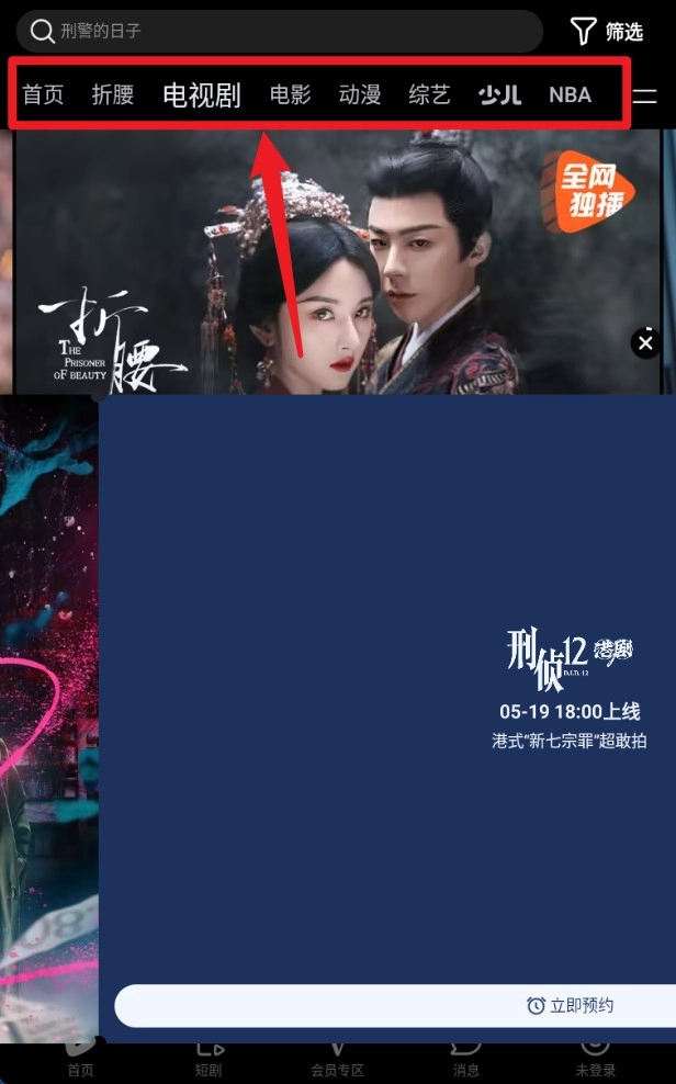 切換頻道的操作方式為:點擊頁面頂部的頻道導航欄,即可切換到電視劇、綜藝、動漫等不同分類的內(nèi)容。