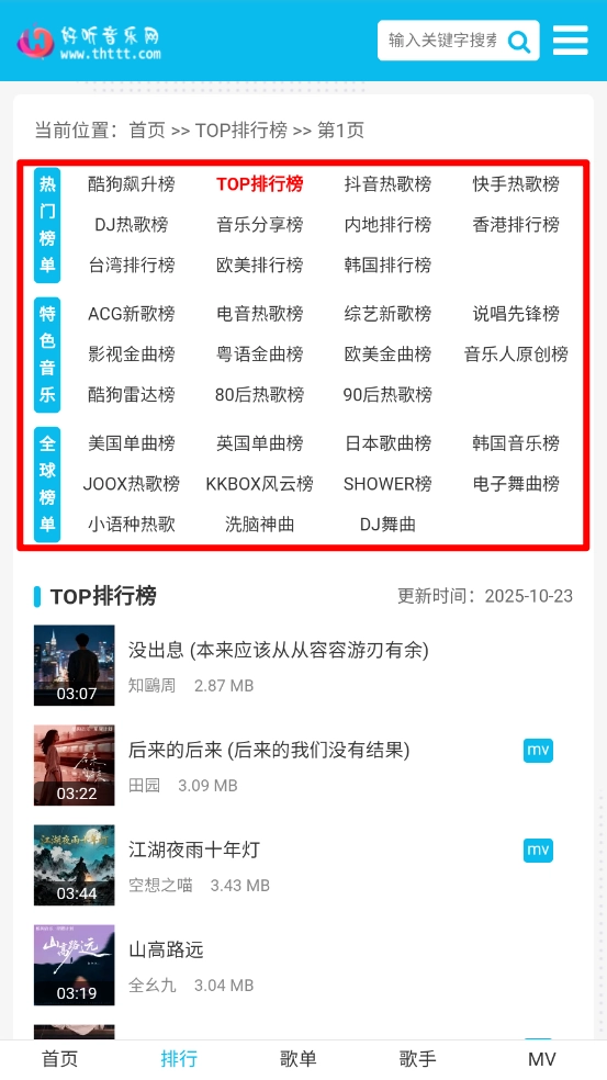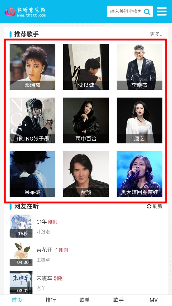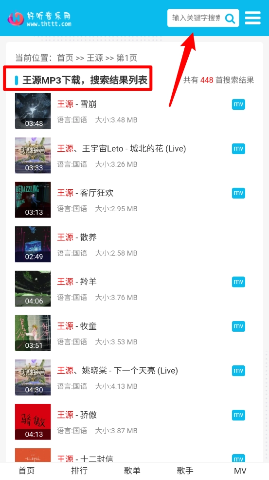 還可以在搜索框,輸入歌手的名稱查看歌曲。