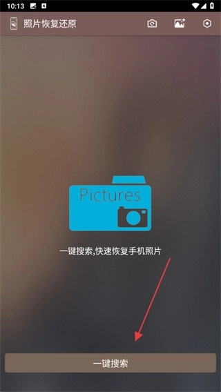 打開照片恢復(fù)還原應(yīng)用,點擊一鍵搜索按鈕。