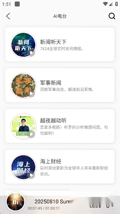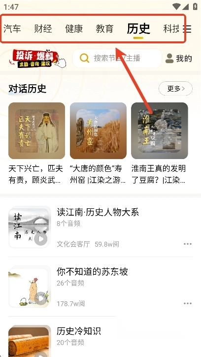 用戶們也可以根據(jù)頻道分類選擇自己喜歡類型的廣播節(jié)目,涵蓋汽車、財經(jīng)、健康、教育、歷史等類別。