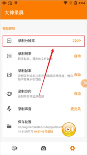 進(jìn)入設(shè)置詳情頁中,點(diǎn)擊錄屏分辨率;