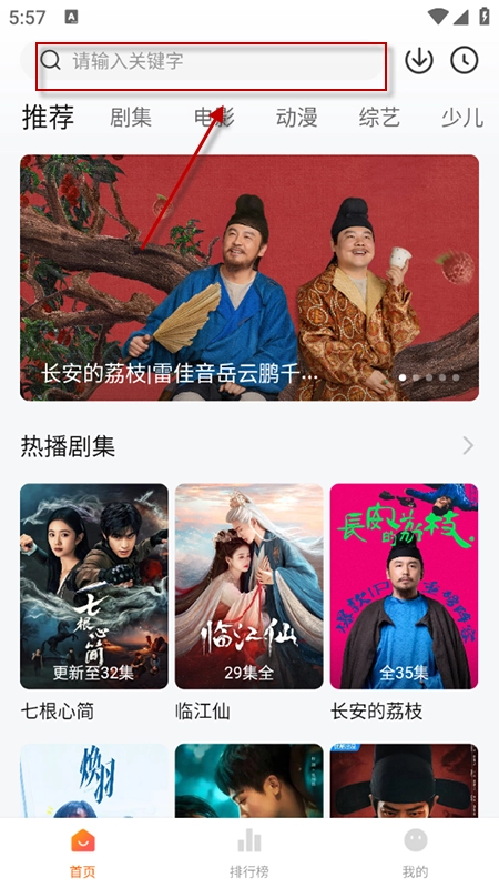 點(diǎn)擊搜索框,輸入我們想看的電視劇或電影名稱來(lái)進(jìn)行搜索。