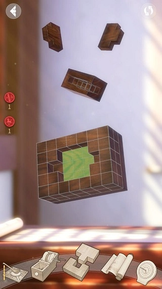 若玩家尚未解鎖圖紙,不妨先嘗試組合操作,觀察最終三大結(jié)構(gòu)的組裝方式,再針對(duì)組合失敗的情況進(jìn)行調(diào)整??梢钥吹絻蓚€(gè)卯結(jié)構(gòu)能夠直接對(duì)接,核心在于把榫結(jié)構(gòu)多余的部分去除,讓它實(shí)現(xiàn)“向上對(duì)正”。
