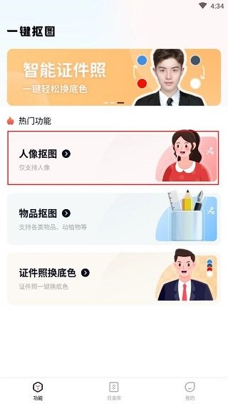 進入軟件后,就可以按照自身需求進行各項選擇了。拿人像摳圖來說,點擊它就能進入對應(yīng)的功能界面。