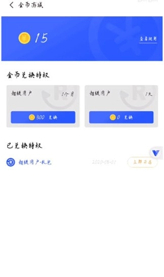 打開金幣兌換特權(quán)頁面,里面有超級用戶一個月的零金幣兌換選項,點(diǎn)擊該零金幣兌換選項即可。